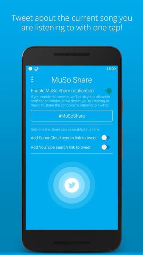 Muso Share memiliki satu tugas sederhana, tweeting tentang lagu yang sedang Anda dengarkan. Kami dapat mendeteksi setiap kali Anda memainkan lagu dan mendorong Anda pemberitahuan diklik yang tweet tentang lagu yang sedang Anda dengarkan. Kami juga dapat secara otomatis menambahkan YouTube atau SoundCloud link ke tweet sehingga pengikut Anda juga memiliki sesuatu untuk mendengarkan. Muso Share berjalan di latar belakang dan mendeteksi lagu yang sedang Anda dengarkan. Kami tidak menyimpan dan / atau informasi ini, tetapi memberikan Anda kemampuan untuk melakukannya.