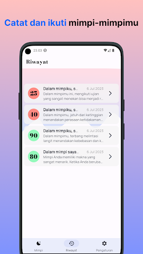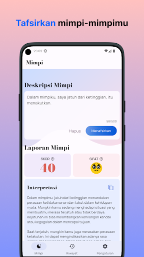Antarmuka yang Ramah Pengguna: Antarmuka Mimpi Snap dirancang sederhana dan intuitif, sehingga mudah digunakan oleh siapa saja. Mimpi Snap adalah alat yang sempurna untuk membuka rahasia mimpi Anda.