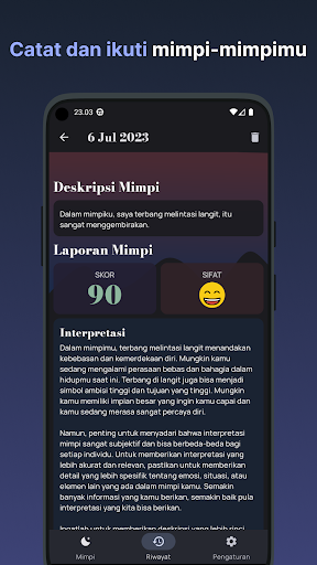 Perekaman Mimpi: Dengan Mimpi Snap, Anda dapat dengan mudah merekam mimpi Anda segera setelah Anda bangun. Aplikasi ini menyediakan antarmuka yang sederhana dan intuitif yang membuatnya mudah untuk menangkap semua detail mimpi Anda, termasuk orang, tempat, dan emosi yang terlibat.