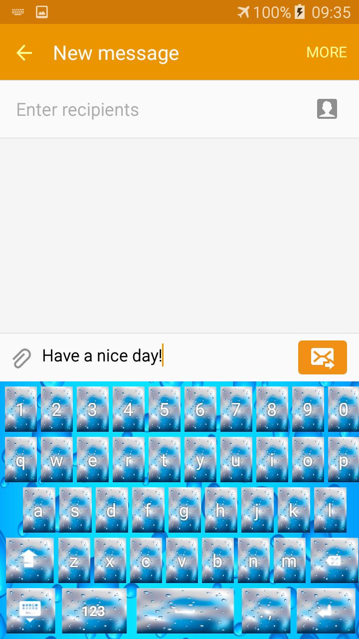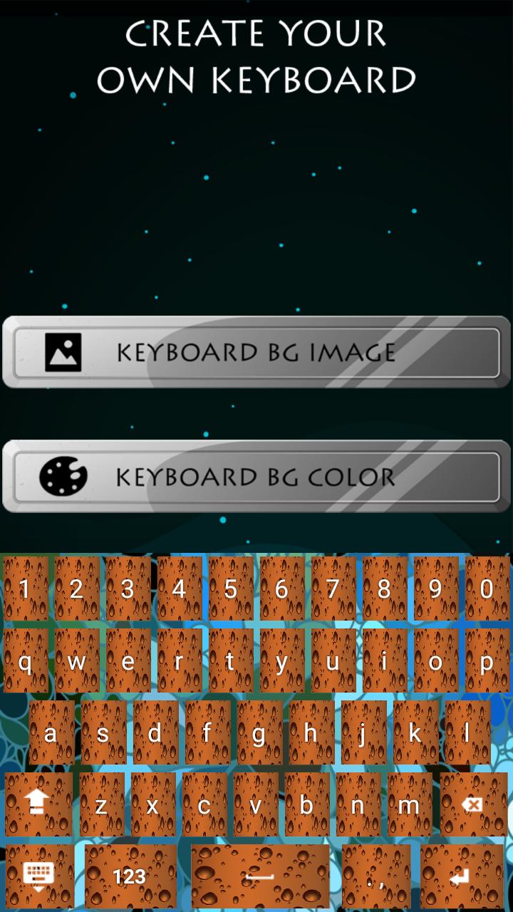 How do you feel when it is raining? For some it represents the most romantic weather conditions for a nice pleasant walk under the umbrella. Decorate your smartphone or tablet with the magnificent globules of water all over the breathtaking orange surface. It will evoke the sense of energy and you cannot take your eyes off it. It is simple but so beautiful at the same time that you are startled completely. Do not hesitate but pick the coolest button shape and make the latest and stylish keyboard layout. Show it to all of your friends to amaze them completely. Do you know that with the best ♔Water Drops Keyboards♔ you can open the gallery on your device? Have fun and explore your own top pictures to select the one that will be perfect. Keep in mind that you do not have to set the whole of it as the background image but you can cut just the part of it that you want to utilize.
