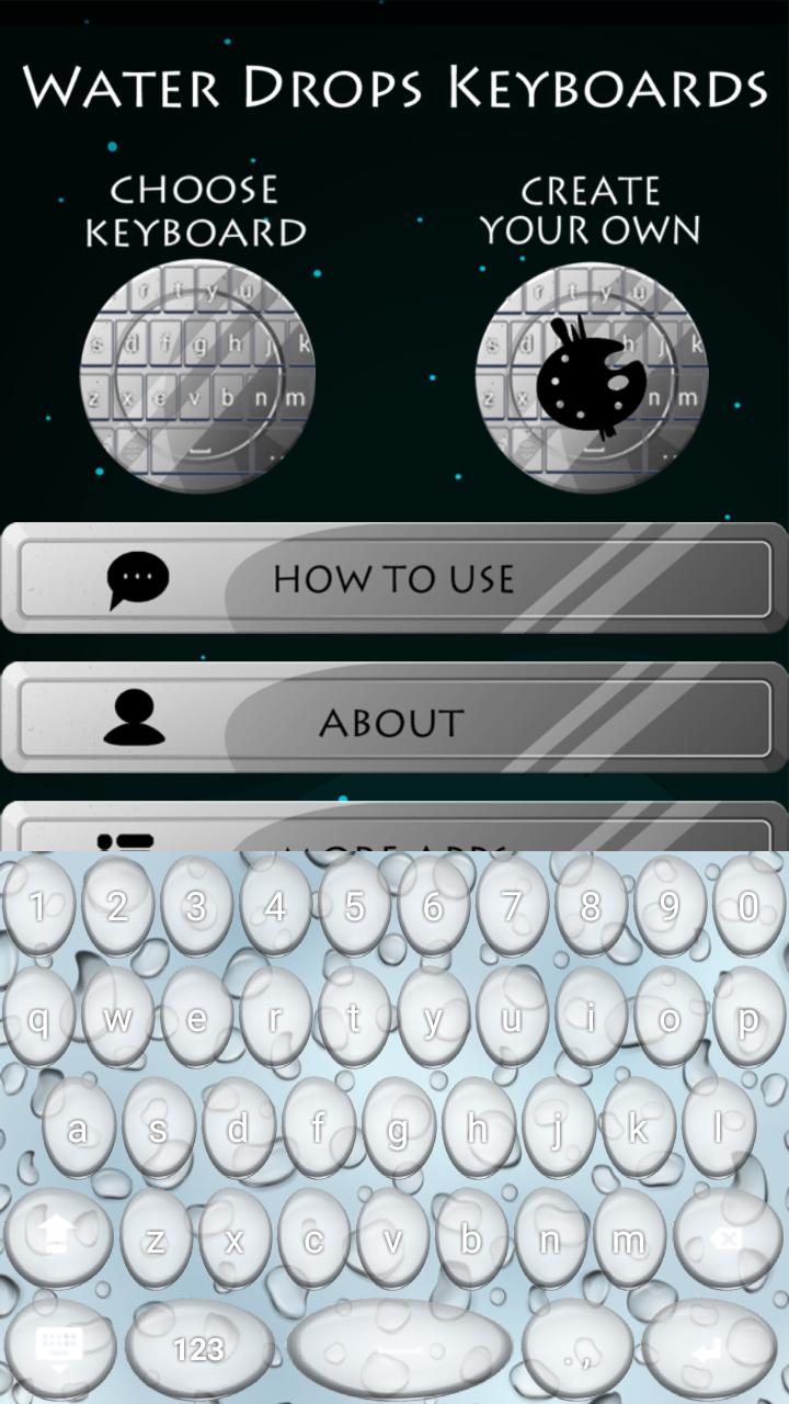 Now is the high time for you to change that boring old keyboard and bring some fun into your writing style. You will be astonished with the top application when you see how many options for customization it offers to you. Turn typing into entertainment right now and be proud with your newest keyboard cover! Do you know that now you can even take a photo on the spot and use it as the background image? It is the best advantage that thrills you besides perfect picture, which presents the loveliest water drops bedecking the amazing glass. You can also open the background color changer where you can pick your favorite hue. It will embellish your creation in wonderful way. Download free the popular ♔Water Drops Keyboards♔ and enjoy in the impressive photos that enhance your writing style.