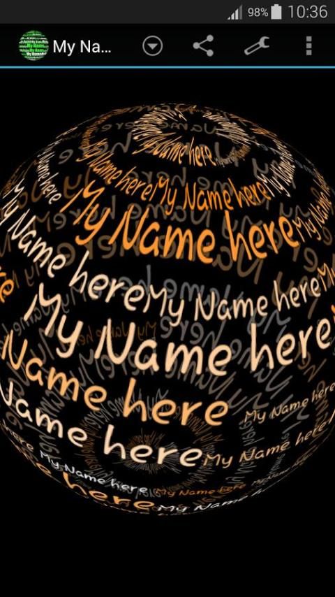 Besar Gambar dengan Anda akan melihat nama Anda, nama atau teks yang Anda inginkan dengan efek spektakuler 3D. Anda dapat mengubah warna teks dengan mengklik ganda pada layar dan juga Anda dapat mengubah ukurannya dengan zoom dengan jari. Anda juga dapat mengubah teks dari ikon di kiri atas pada layar utama.