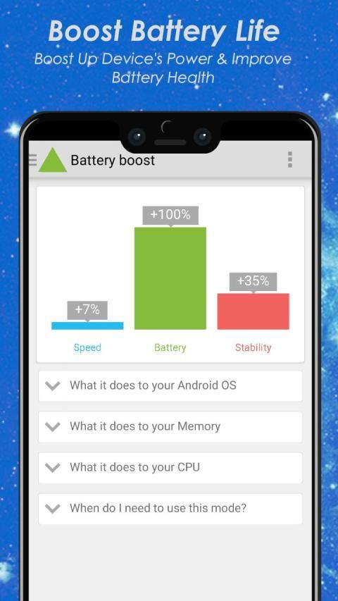 Boost your device's performance with just one touch. Optimize the CPU, RAM, Save power, improve battery health and many other things automatically for Gaming and max performance!