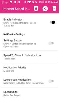 You can customize almost everything you want. Easily show and hide the indicator if needed. Decide for you where you want to show the indicator in the status bar, whether it should be shown on lockscreen or whether you want to use bytes per second (e.g. kBps) or bits per second (e.g. kbps) to show the speed.
