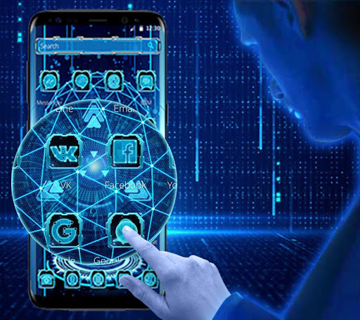 5. Tampilan biru dengan ikon hologram membuat Anda merasa teknologi.