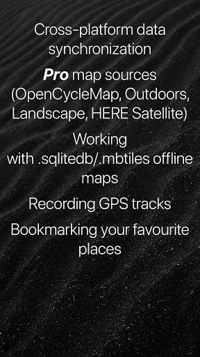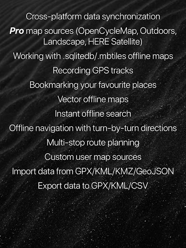 • Semua data seperti tempat yang disimpan, trek GPS yang direkam dan rute yang dibuat akan disinkronkan pada semua perangkat Anda di kedua platform OS