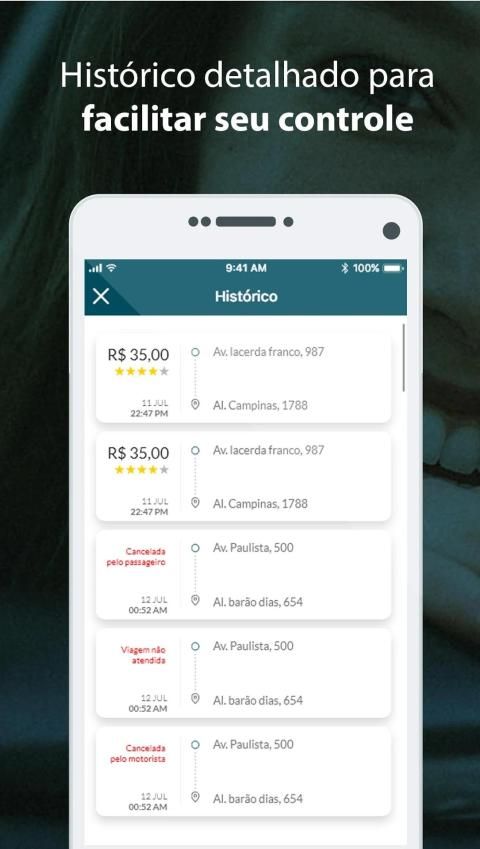 Acompanhe seus ganhos depois de cada viagem com o marcador na tela do