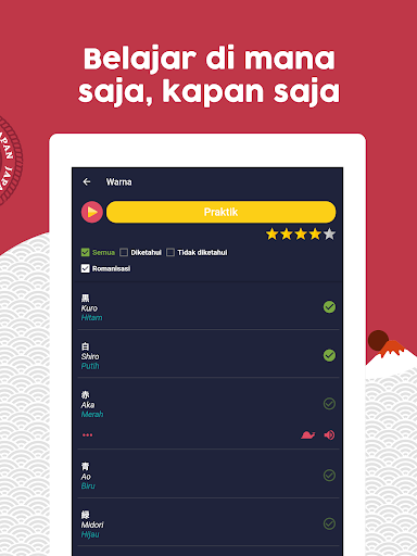 Anda belajar bahasa Jepang dari nol, dari dasar hingga kata-kata yang lebih maju.