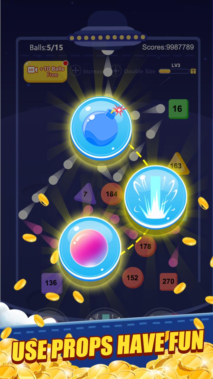 4️⃣ Hit prop blocks to make extra balls or double size ball.