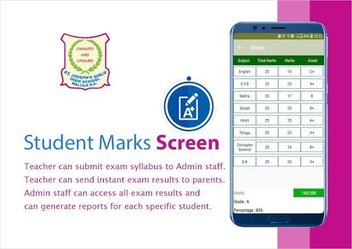 St. Joseph's Girls' High School app provides an instant communication system for staff, teachers and parents. It helps the teachers send any kind of information regarding students to their parents instantly with just a click.