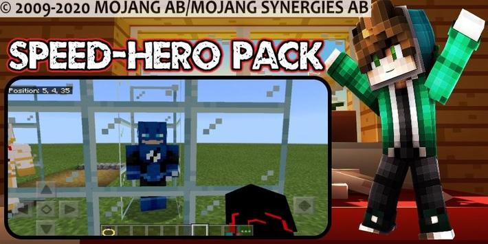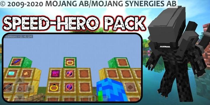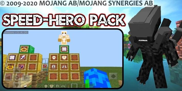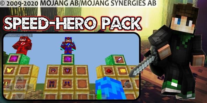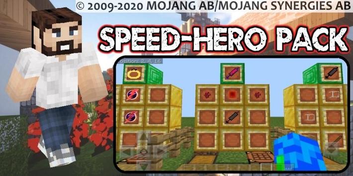 This app contains 3 mods(maps, skins or textures) for mcpe : 1. Speed-Hero Mod, 2. Speed-Hero Parkour Map, 3. Super-Heroes Pack Mod.