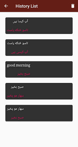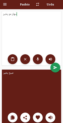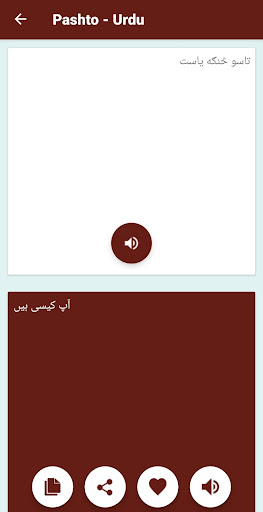 * Aplikasi berfungsiDalam kedua mode tersebut, pashto ke penerjemah Urdu atau Urdu ke Pashto penerjemah.