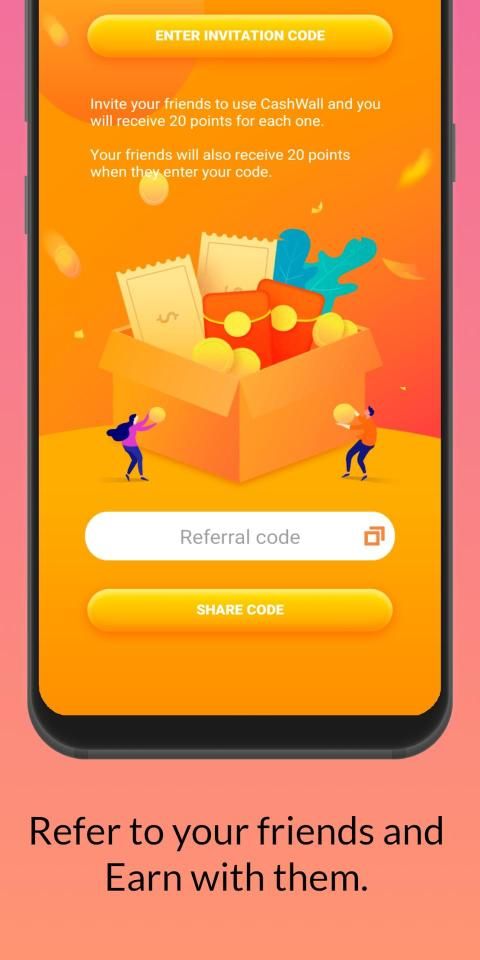 -Earn money with this Earning Apps by inviting your friends with invitation code through Facebook, messenger, WhatsApp, Instagram, SMS, and other communication t