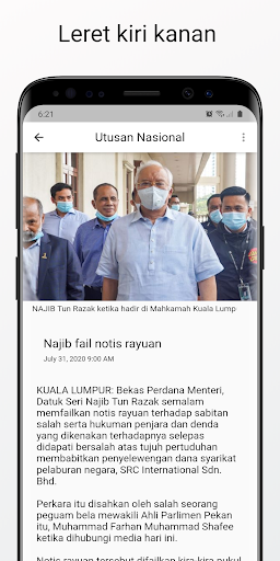 Navigasi yang mudah, leret ke kiri dan kanan untuk membuka berita seterusnya, tonton gambar seterusnya
