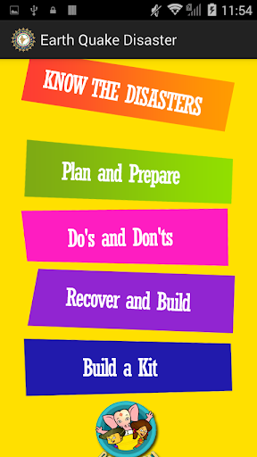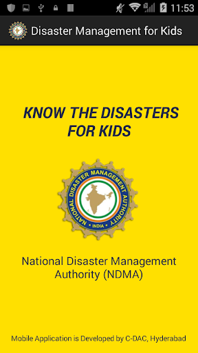 Disaster Management for Kids app can be used as a user guide for children to know about disasters, how to plan and prepare during disasters, Do's and Dont's, how to recover and build and preparing a kit. It also includes Dost Appu Vidoes for earth quakes, floods, landslides, cyclones, tsunamis, urban flood, drought, bio-logical disaster etc.