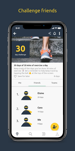 Tambahkan teman Anda sehingga Anda dapat melihat tantangan apa yang mereka selesaikan untuk inspirasi dan bandingkan dengan tantangan yang Anda lakukan.