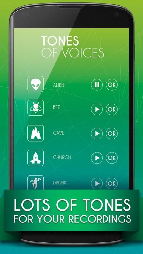 changer suara ini sangat mudah digunakan, merekam suara Anda, menerapkan efek yang Anda inginkan, dan membaginya dengan teman-teman Anda.