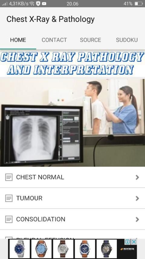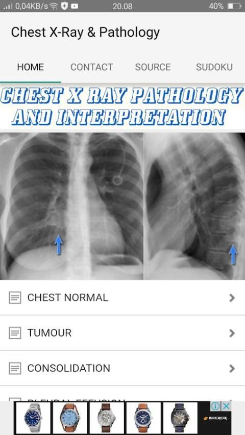 this APK Explains how to recognize basic radiological signs, pathology and patterns associated with common medical conditions as seen on plain PA and AP chest radiographs
