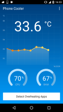 Phone Cooler is a functional temperature monitoring and controlling app that detects and closes heavy resource consuming apps to reduce CPU usage and lower phone temperature.