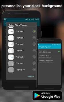 - Design skins many themes.(Analog clock, Simple, Cool, and Elegant)