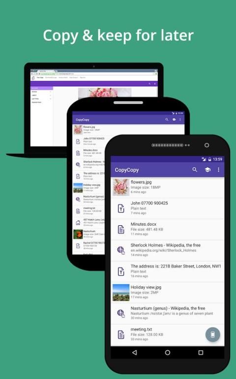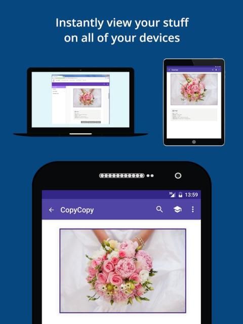 CopyCopy menangani itu semua - dari teks dan foto, konten web dan folder. Apa pun yang bisa dipilih & disalin dalam setiap aplikasi di ponsel atau komputer, bisa copycopied.