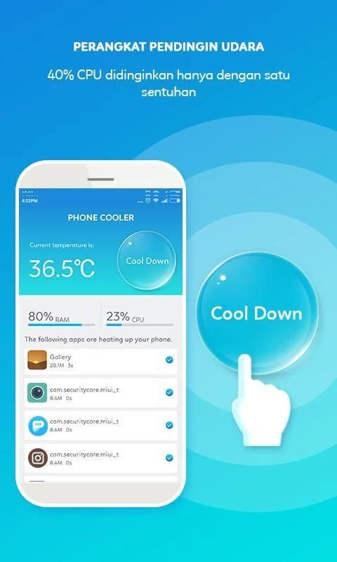 Ukuran Mini mudah untuk men-download aplikasi pendingin baterai