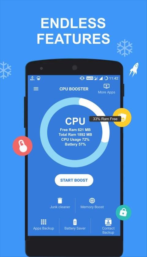 Sebuah penguat cepat untuk membebaskan RAM, tugas latar belakang bersih, memberikan tambahan masuk dalam widget desktop dan shortcut.