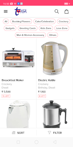 - Sort and Filter gifts by Category, Occasion, Price, etc.