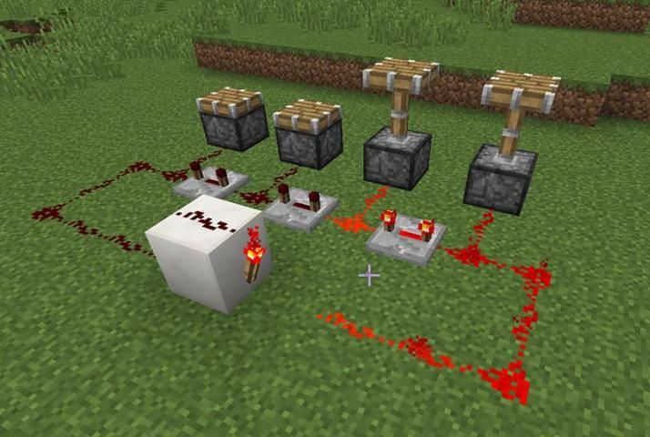 Katakanlah Anda menggunakan banyak debu redstone untuk menghubungkan lampu redstone untuk tuas. Jika garis debu terlalu panjang sinyal redstone tidak akan lulus semua jalan melalui. Untuk menghindari masalah ini Anda dapat mengganti debu redstone dengan repeater redstone untuk memberikan sisa Redstones kekuatan penuh kembali. Dan hasilnya, seperti yang Anda lihat pada gambar di bawah, berhasil. Redstone + adalah mod yang mencoba untuk membuat fitur-fitur yang tersedia bagi kita sekarang. Sejauh fitur mod termasuk repeater, piston, blok perintah dan blok lendir. Dispenser, droppers dan pembanding redstone masih bekerja di kemajuan tapi mudah-mudahan sesuatu yang kita akan dapat menggunakan segera juga.