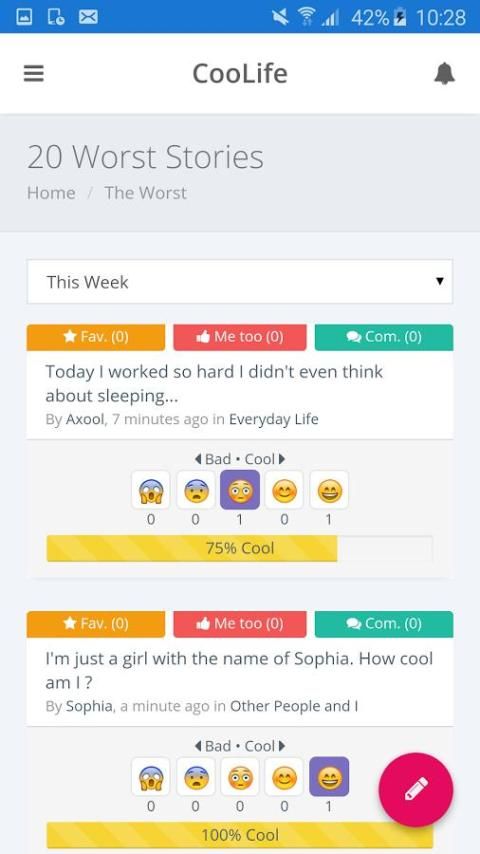 CooLife is the first social network where you can share random stories about your life and discover what people think about it in minutes.