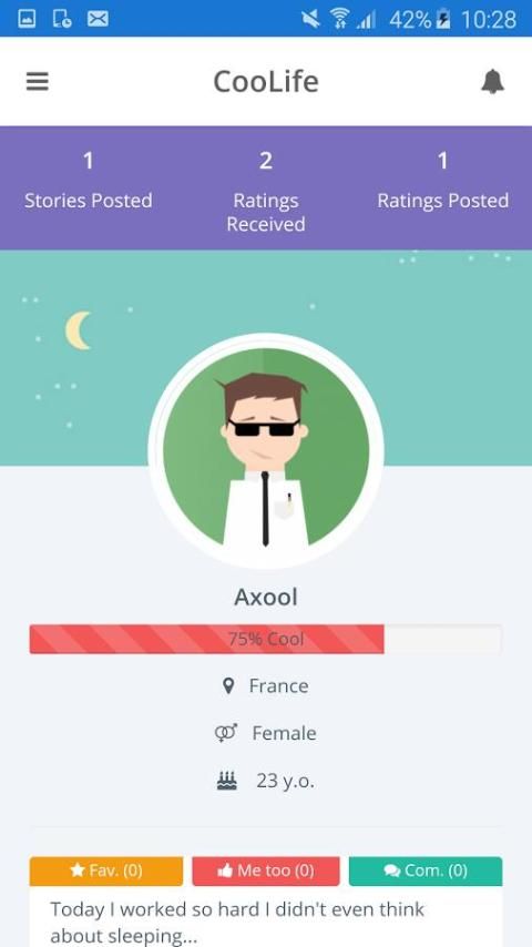 We always want to know what others think about us : CooLife gives this possibility by writing random life stories or event anonymously. People are usually too shy to write this kind of stories with their public profile on Facebook or Twitter... With CooLife, it's not a problem anymore.