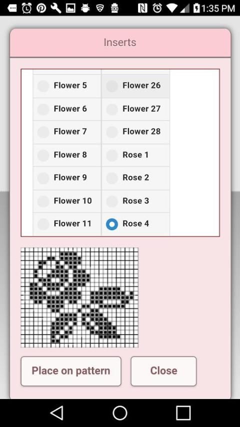 Anda juga dapat memilih dari lebih dari 400 perangko, menyisipkan dan perbatasan untuk menerapkan pola crochet Anda.