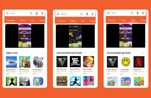 This new dFast app tips is a very visual app that guides the user's attention to help them to find the app he or she may be interested in. d fast download app guide main page shows you different tabs and menus to help you to quickly filter your search, looking for trending apps, games, collections...