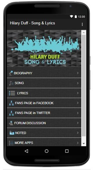 Download gratis sekarang! HIlary Duff Lagu lirik aplikasi.