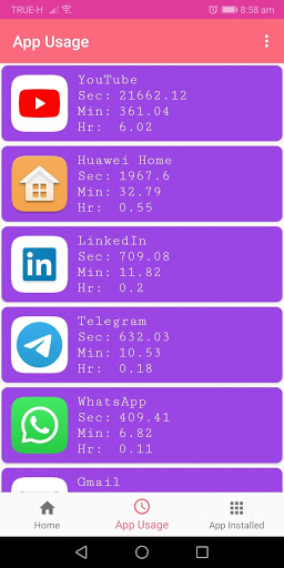 Parental Control adalah aplikasi sederhana untuk melacak berapa banyak waktu yang Anda habiskan untuk setiap aplikasi.Ini dapat memberi Anda statika penggunaan aplikasi per hari, minggu, bulan dan tahun.