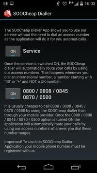Once the service is switched ON, the Soocheap dialler will automatically route your calls by using our access numbers. This happens whenever you dial an international number, a number starting with "00" or " " and NOT a UK number.