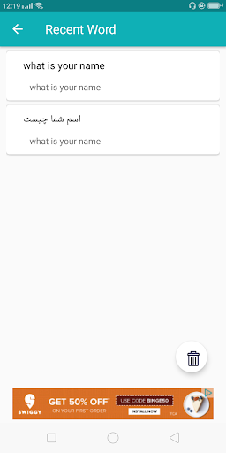 - برنامه مترجم رایگان برای پیگیری تاریخچه ترجمه خود را در حالت آفلاین (مترجم انگلیسی به فارسی)
