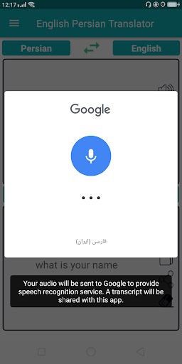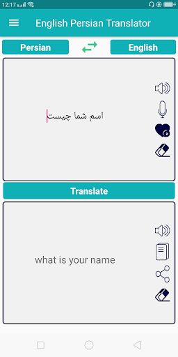 - Pidato untuk mengirim pesan bahasa Inggris dan Persia, dan kalimat. (Persia Penerjemah) - Penerjemah Persia ke Bahasa Inggris untuk Teks ke Pidato Bahasa apa pun, kata apa pun kata dan kalimat. (Terjemahan Bahasa Inggris Persia) - Tambahkan kata dan kalimat favorit Anda ke dalam daftar favorit Anda dan aksesnya dalam mode offline Juga. (Bahasa Inggris Persia Penerjemah) - Aplikasi Penerjemah Gratis untuk melacak riwayat terjemahan Anda dalam mode offline. (Bahasa Inggris ke Persia Penerjemah)