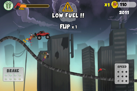 • Kill 4 different species of zombies to earn gold coins and unlock better cars with better fuel capacity.