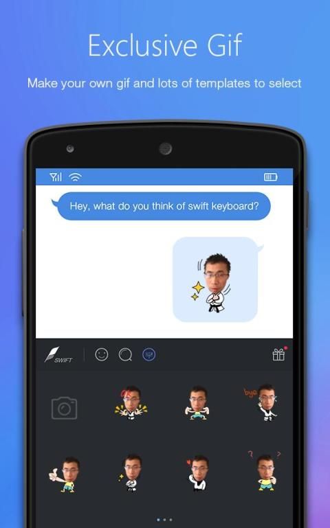 Swift Keyboard menawarkan bermacam-macam pilihan ekspresi dan karakter-karakter lucu untuk mengungkapkan perasaan Anda. Unduh dan gunakan stiker-stiker ini sekarang!
