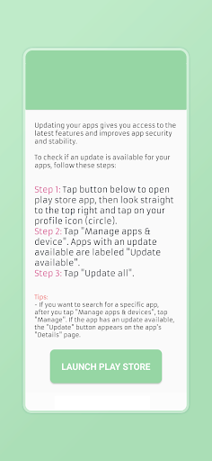This app is a powerful tool to update your play store app to newest version or latest version.