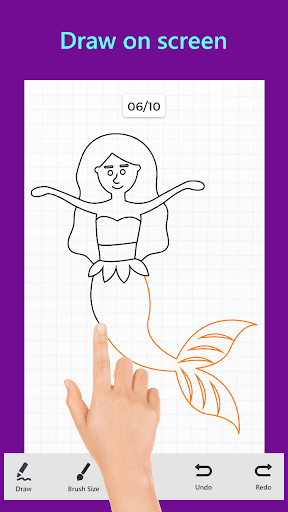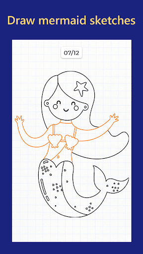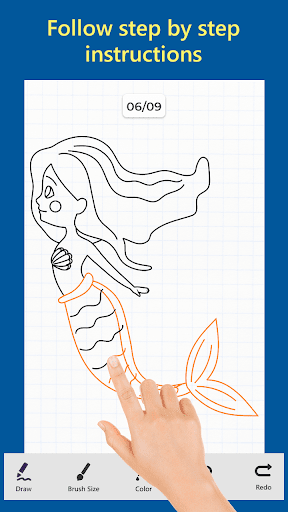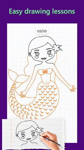 When you visit the Learn section of the app, you will see various mermaid pictures. You have to click on a picture to see its step by step drawing lesson.