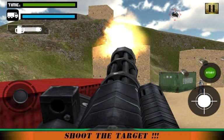 Sentuh dan tekan kontrol halus untuk menembak musuh dengan senapan Gatling