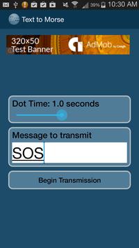 This application allows you to translate a text message into Morse code through the flash on your phone. The adjustable speed allows for those at various skill levels of interpreting Morse code to be able to understand the messages being transmitted. The adjustable speed is based on the International standard for Morse code which works as follows: