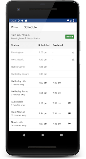 Catatan: Data Bersumber langsung dari umpan waktu nyata MBTA yang dikumpulkan menggunakan peralatan PTIS yang dipasang di kereta. Kami tidak membuat prediksi sendiri; Aplikasi ini hanyalah antarmuka untuk data MBTA.