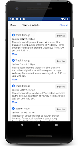 Aplikasi ini dirancang khusus untuk komuter berpengalaman yang sudah terbiasa dengan jadwal baris mereka dan ketahuilah yang mereka ambil. Jika Anda baru mengenal kereta komuter atau sedang mencari perencanaan perjalanan, silakan pertimbangkan aplikasi transit atau situs web resmi MBTA sebagai gantinya.
