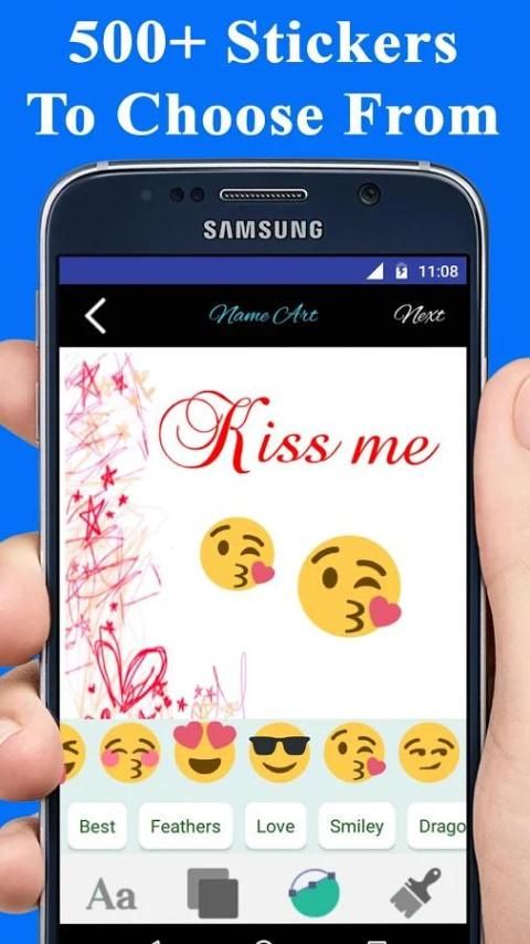 Gunakan 500 + stiker yang tersedia untuk membuat nama pics. Gunakan stiker dari koleksi kami seperti: stiker cinta, pasangan, stiker emoji, stiker naga, stiker jantung dan banyak lagi yang membantu Anda menghasilkan seni teks bergaya.