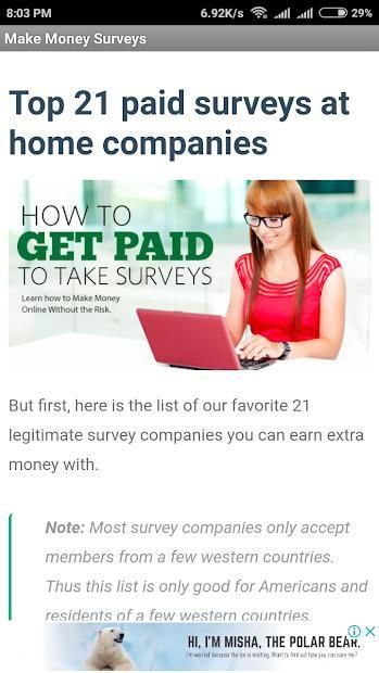 Dapatkan bayaran untuk mengambil survei online untuk uang. Kedengarannya seperti pekerjaan impian semua orang! Tidak heran itu sangat populer. Ketika datang untuk membuat uang online dan bekerja dari pekerjaan rumah, survei dibayar biasanya merupakan salah satu peluang pertama yang paling kita pertimbangkan.