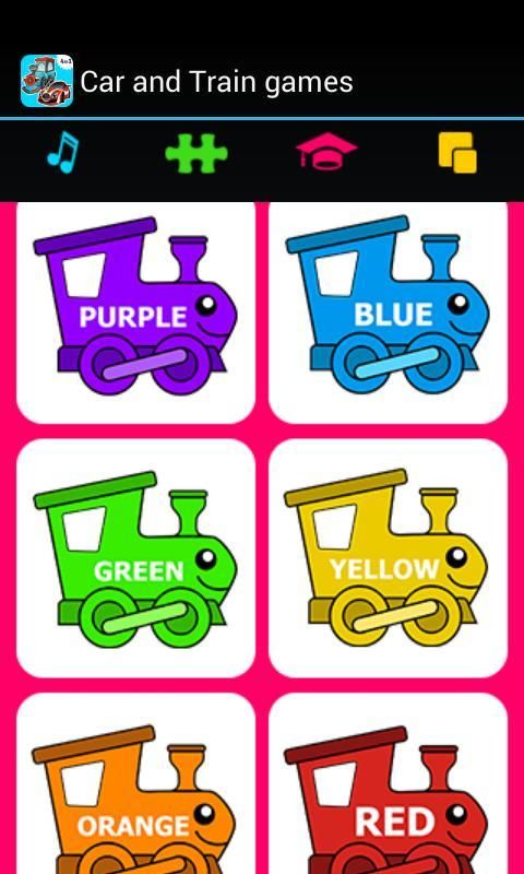 Choo choo! Balita kereta datang. Jika sedikit kendaraan cinta mekanik Anda suara, warna, memo permainan dan teka-teki aplikasi ini interaktif penuh untuknya. Mobil & Kereta game untuk balita penuh permainan pendidikan yang berbeda menarik dan menyenangkan. Konduktor kecil Anda akan belajar mobil keren suara, tanduk, surat abc, nama, bentuk, warna lokomotif uap, kereta suara, rambu lalu lintas, dan benda-benda kartun favorit seperti topi penyihir, topi natal dan topi bajak laut. Jadi tidak hanya aktivitas game menyenangkan untuk anak laki-laki, tetapi juga belajar aplikasi untuk usia 2 dan ke atas.