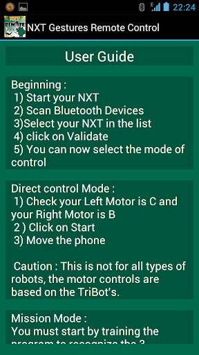 Aplikasi ini memungkinkan kontrol robot NXT melalui ponsel Android menggunakan Bluetooth.